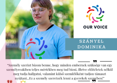 Az “Our Voice Is Our Power” (A mi hangunk – a mi erőnk) című eseményünk fókuszában az állami gondoskodásban élő fiatalok felzárkózási esélyei és az őket célzó inkluzív gyakorlatok álltak, amelyek szerepet játszhatnak a szegénység felszámolásában. A kísérőrendezvényen bemutattuk az állami gondoskodásban élő fiataloknak szóló, nemzetközi "Our Voice – a Mi Hangunk" programot, amely Magyarország, Belgium és Románia együttműködésében valósul meg az Európai Unió támogatásával.