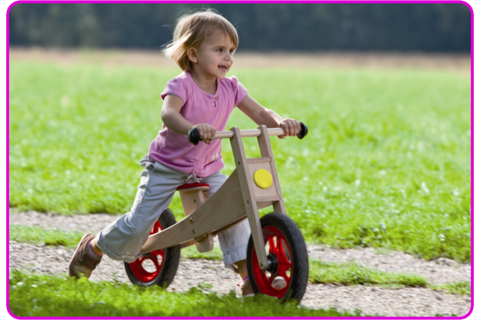 A fa futóbicikli tehát úgy alkalmazkodik a kisgyerekek fejlettségi szintjéhez, hogy közben az egyensúlyozást és a két keréken manőverezést is készséggé teszi; így készíti elő a terepet az „igazi” kerekezéshez.