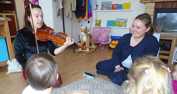 Nagyon szuper délelőttöt töltöttünk ma is el Timi nénivel! 🙂 Egy új hangszerrel is megismerkedhettünk közelebbről ez a „Hegedű” volt! 🙂