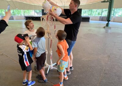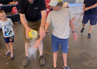 Kétszer voltunk külsős előadáson, ahol egyszer Samuval a csontvázzal találkoztunk, második alkalommal pedig találkozhattunk a HUN-REN Energiatudományi Kutatóközpont Vékonyrétegfizika Laboratórium kutatóival: a híres Dr. Balázsi Katalinnal, férjével Dr. Balázsi Csabával, valamint Radnóczi Györggyel, akik folyékony nitrogénnel mutattak be kísérleteket, melyeket mi is kipróbálhattunk. Virágot törtünk és a kezünkre folyatták a „füstöt”.