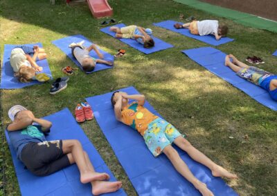 Ugyan ilyen szuper program volt, amikor az udvart változtattuk a tornaszobánkká, vagy gyermek jógát tartottak nekünk a Jógakaland segítségével.