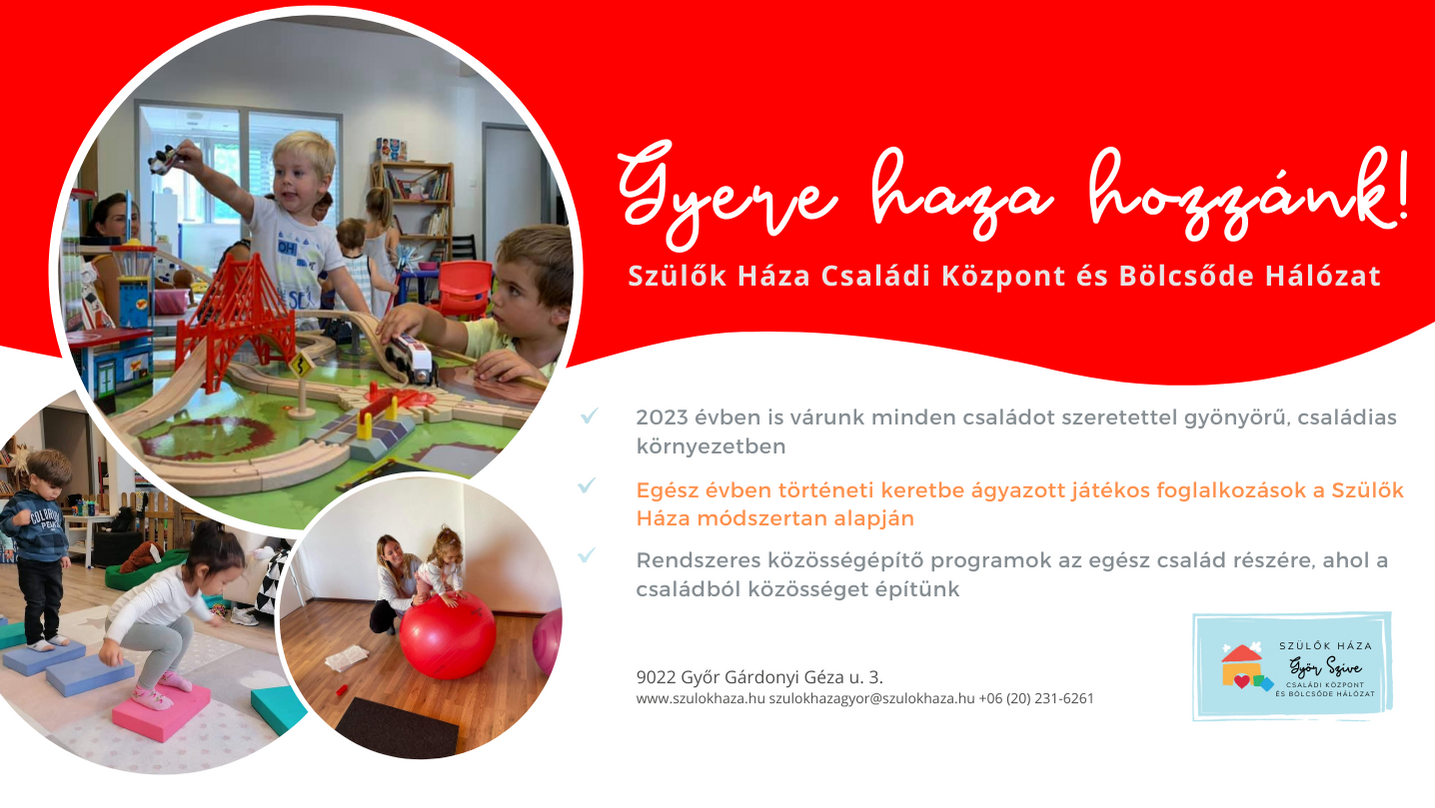 Várunk szeretettel nyílt napjainkon a Szülők Háza Győr Szívébe. Jelentkezni és érdeklődni a 20/483-6140-es számon lehet.