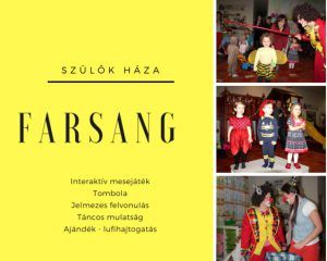 Várunk Benneteket szeretettel farsangi mulatságunkra 2018. február 11-én 10:00 – 12:00 között. A program ára 2000.- forint/gyermek