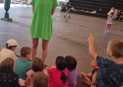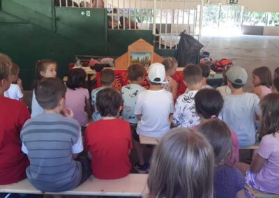 Izgalmas feladatokkal indult ez a hét is: hétfőn megírtuk a csapatindulókat, elkészítettük a csapat címereket és zászlókat. Az egyik csapat táncos színdarabot írt, a másik csoport pedig zenés színdarabot készített, a harmadik csapat pedig díszletet készített a színdarabokhoz. Délután bemutatásra is került mind a két darab. Az előadások után színházi interaktív beszélgetés történt és ennek köszönhetően igazi színházban éreztük magunkat!
